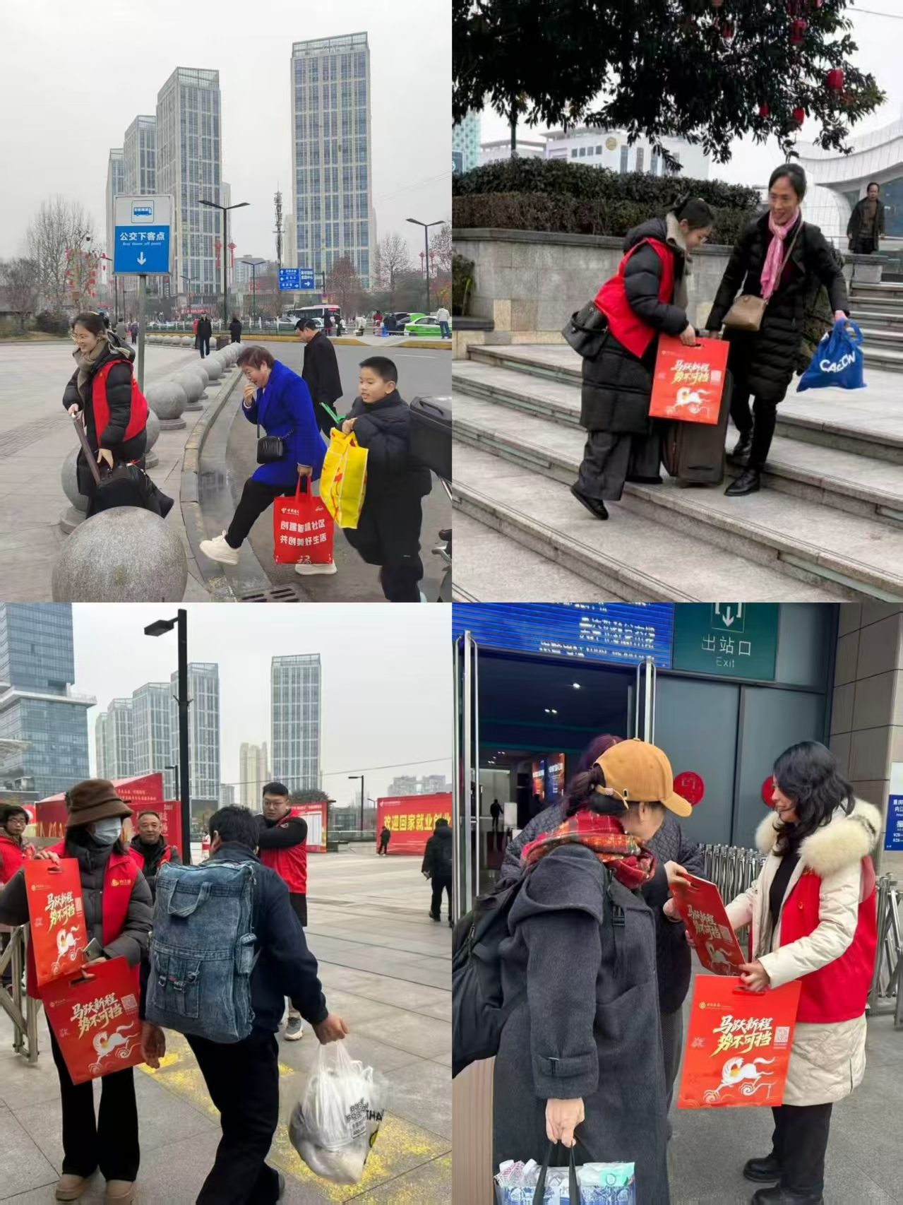 活动当天,党员志愿者身着红马甲,在内江高铁北站进站口及前广场提供多元化服务。一是强化引导咨询,在服务点耐心解答旅客关于路线、车次的疑问,协助进行人群分流和秩序维护,确保通道畅通;二是落实重点帮扶,重点关注老、幼、病、残、孕等特殊群体,主动询问需求,协助搬运行李、提拿重物,提供人性化服务;三是传递新春文化,设置“赠送春联”环节,将提前准备好的寓意吉祥的春联免费发放给过往旅客,传递新春祝福,营造温暖祥和的节日氛围。